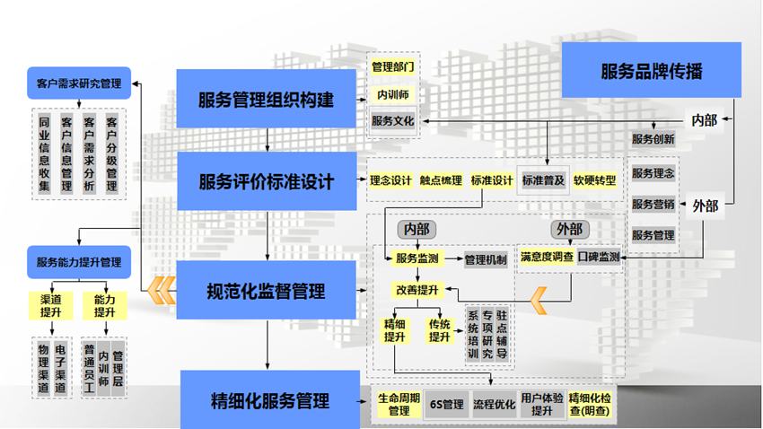 ▪ 服务品牌定位、内部理念传播、外部服务营销;