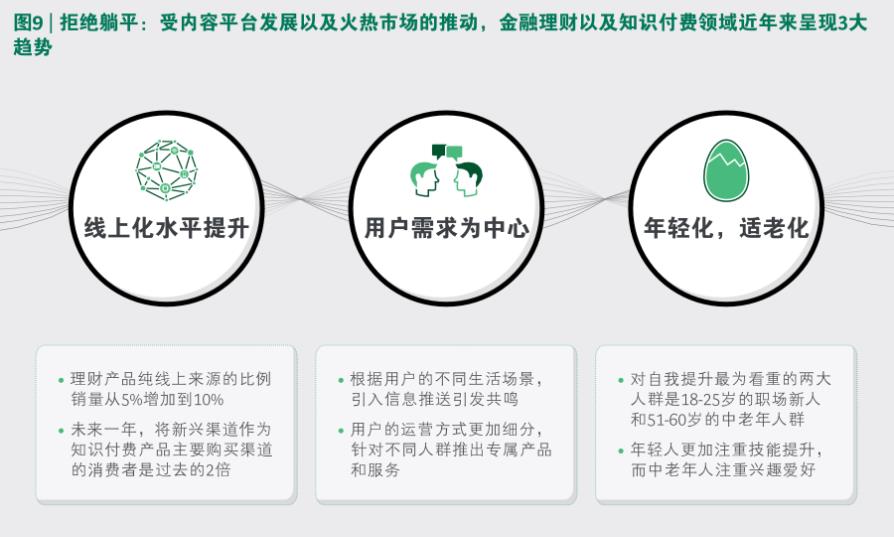 近年来"内卷"和"躺平"等词汇的流行,折射出在社会快速进入新的发展阶段后,人们所面临的巨大竞争压力,消费者渴望在知识和精神层面提升自己,同时为了追求更高品质的生活而对金融理财更感兴趣。而特殊时期的居家办公,让人们有更多可支配的时间。在需求和社会环境的双重催化下,知识付费、金融理财相关行业在过去一年市场关注度快速提升(参阅图9)。